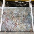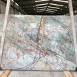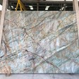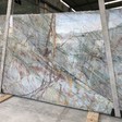 Многоцветный кварцит с плавными переходами зелёных, синих и янтарных тонов. Рисунок напоминает природное свечение, меняющееся от слэба к слэбу. Каждый экземпляр уникален и создаёт сильный эмоциональный эффект.