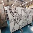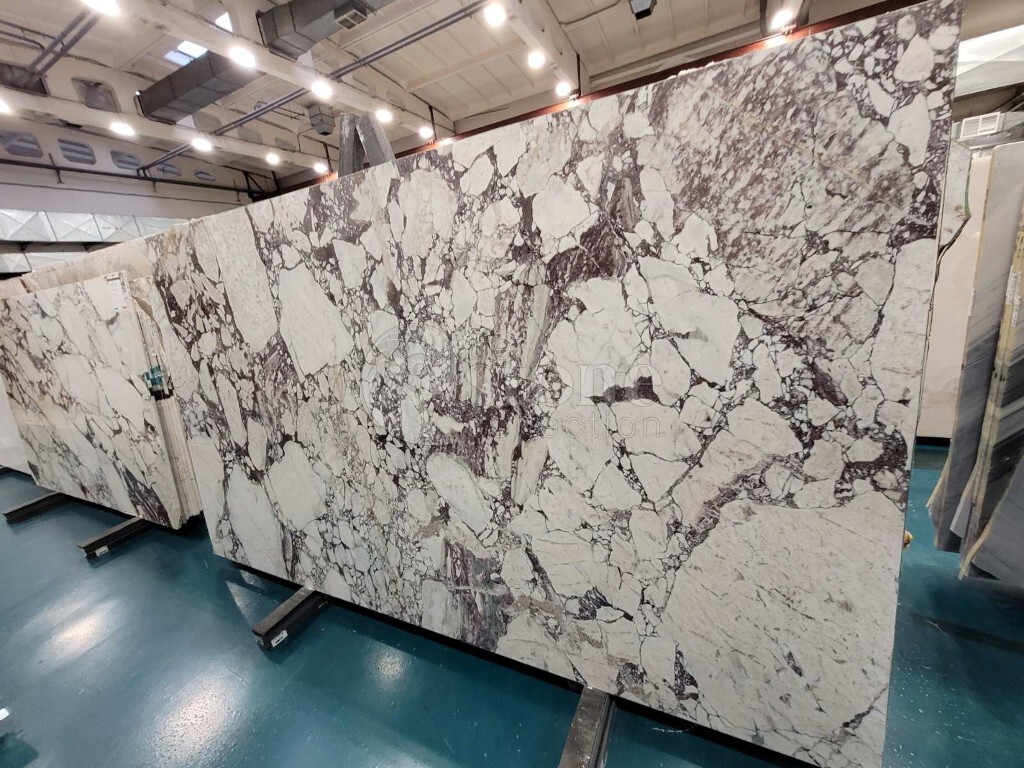 Натуральный мрамор Calacatta Viola добывают в Италии, где он и проходит первичную обработку. В этот момент большие мраморные блоки режут на мелкие плиты, которые и называются слябы.