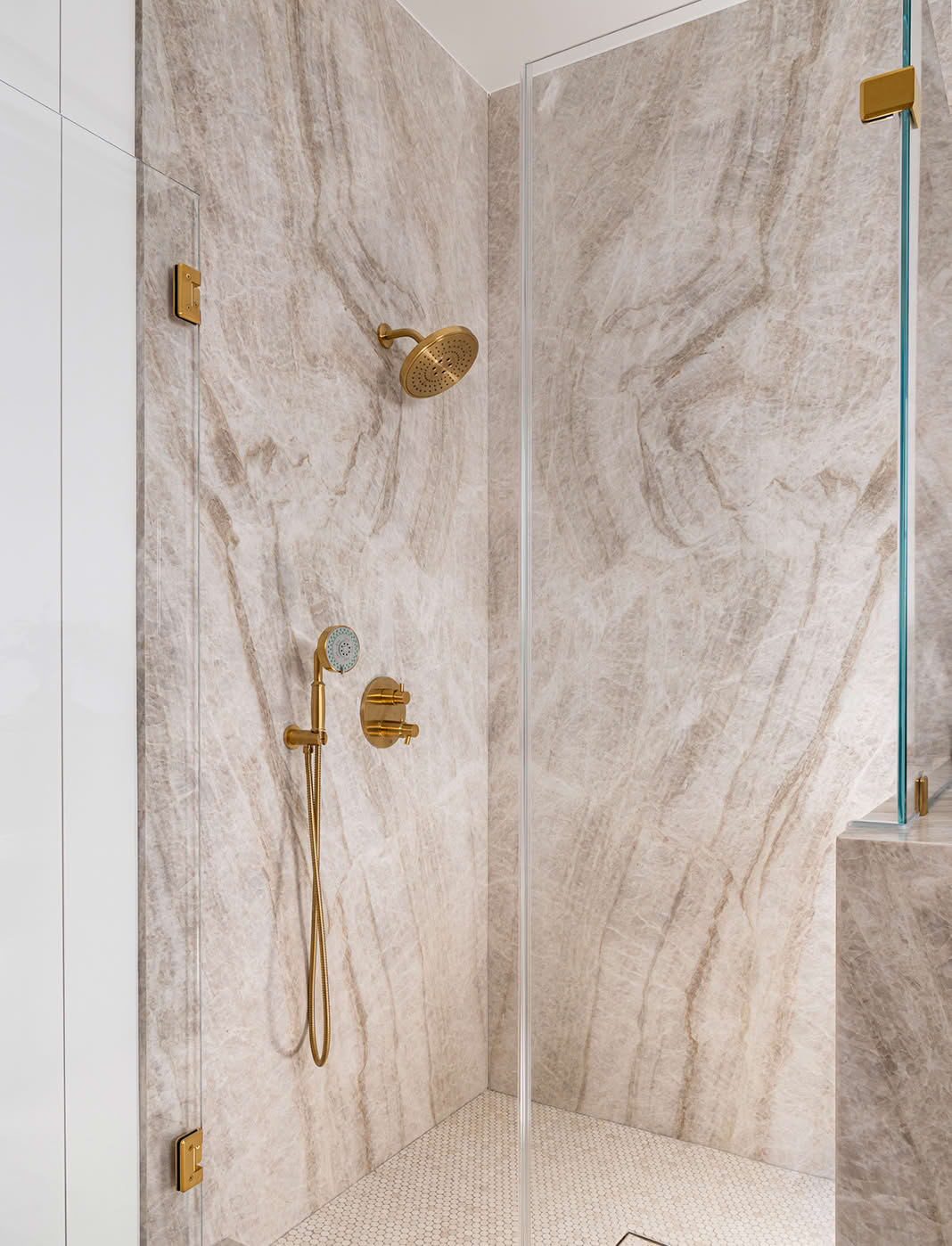 Компания Стоун Коллекшн предоставляет полный комплекс услуг по созданию душевых кабин из кварцита: