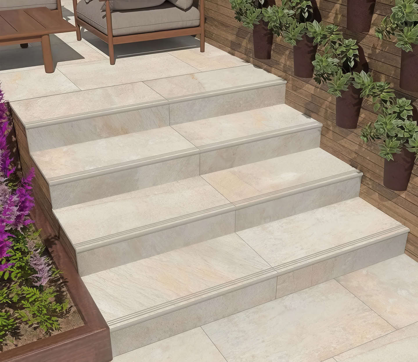 - Прочность и износостойкость – ступени из кварцита выдерживают высокие нагрузки и сохраняют идеальный вид даже при интенсивной эксплуатации.