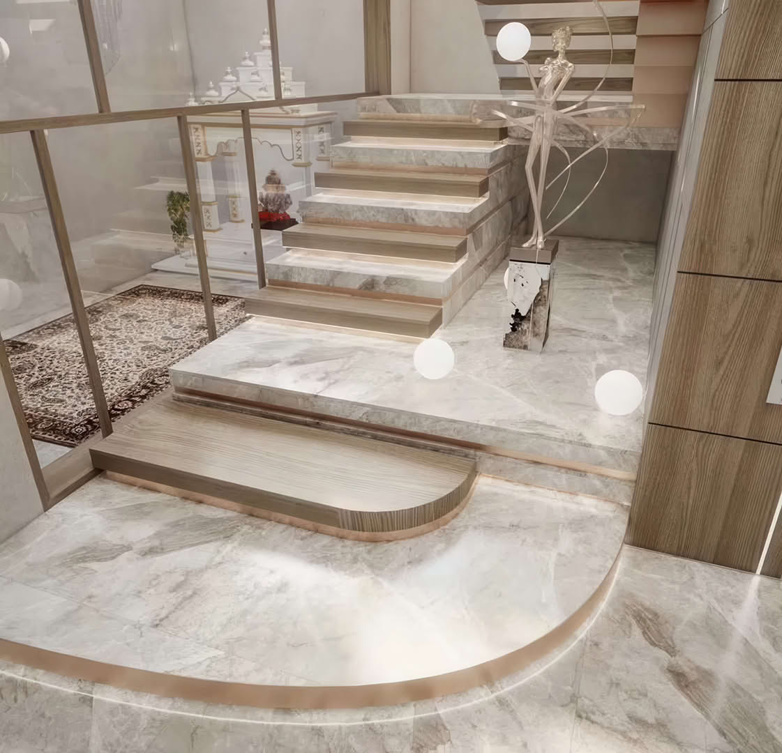 Элитные кварцитовые лестницы обеспечивают долговечность и безопасность, при этом создают эффектный интерьерный акцент для дома и общественных помещений.
