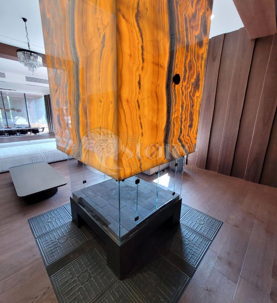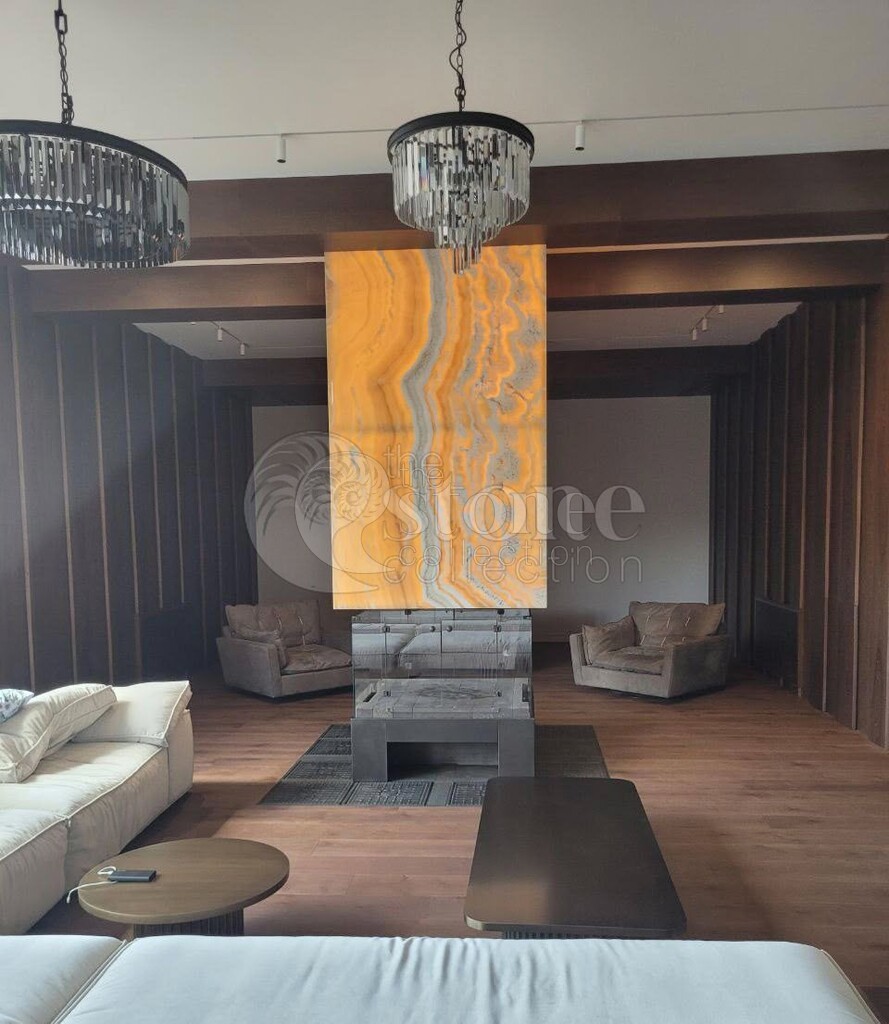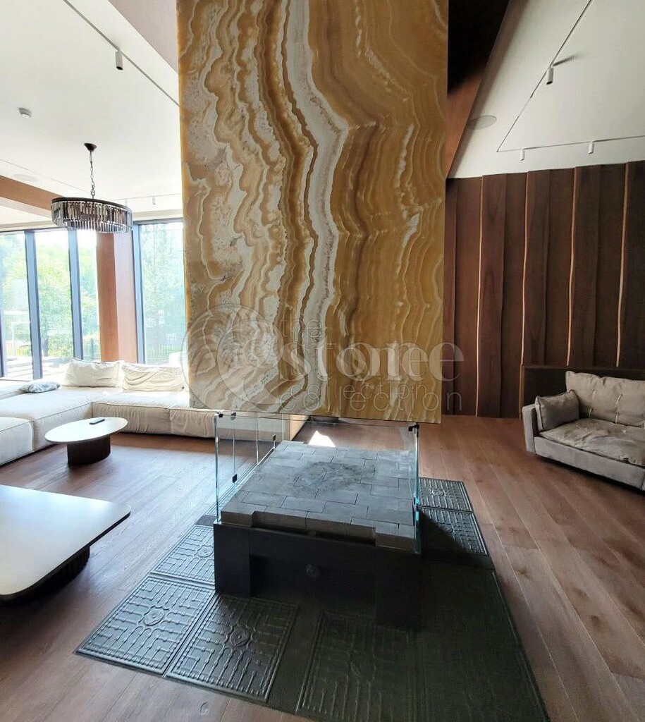 Желтый оникс, родом из Ирана. Золотистый оттенок камня позволяет использовать его для самых разных дизайнерский проектов и помещений.