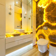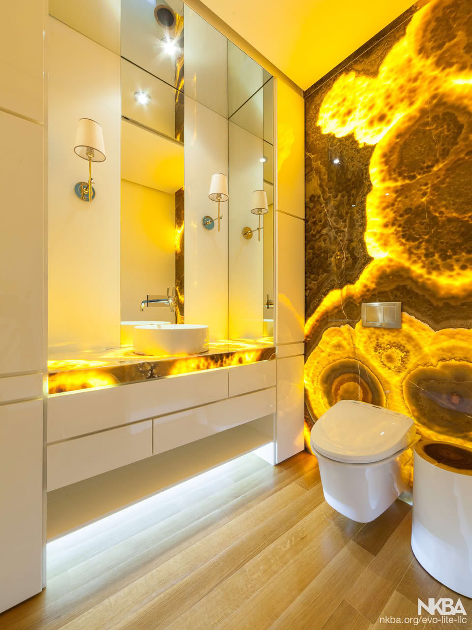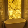 - Стены и панели – ониксовые панели с подсветкой создают акцентные стены, которые становятся центром внимания в гостиной или спальне.