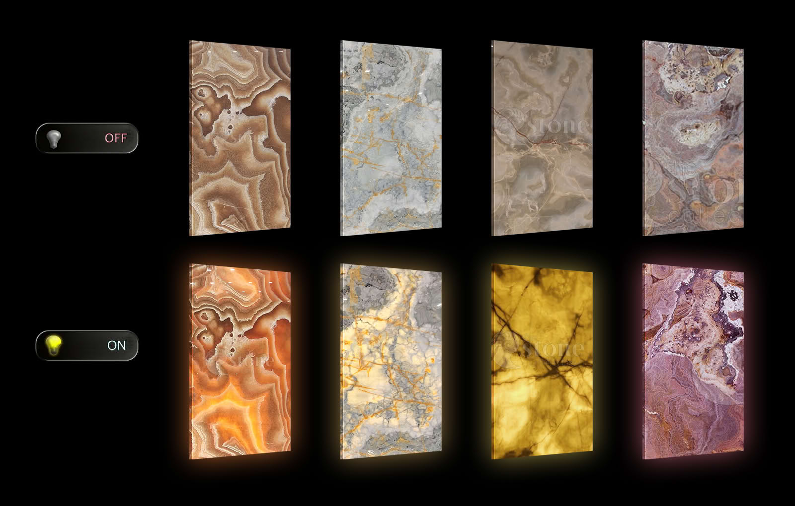 - Полупрозрачность: при включении подсветки оникс буквально оживает, создавая неповторимую атмосферу.