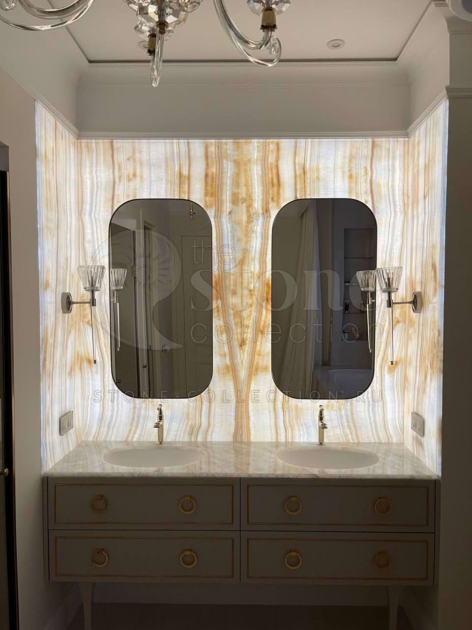 Компания Стоун Коллекшн предлагает полный спектр услуг по изготовлению и монтажу ониксовых изделий с подсветкой в Москве, Московской области и других городах России. Мы обеспечиваем: