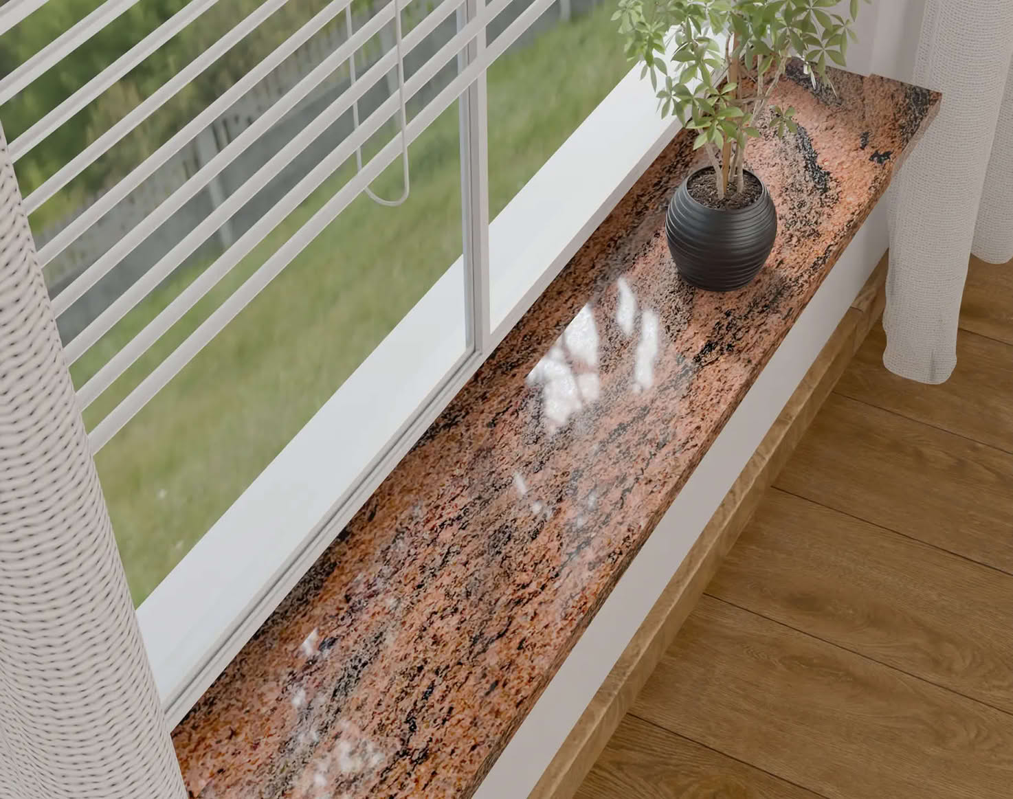Кварцитовые подоконники органично вписываются в любой интерьер квартиры или дома: