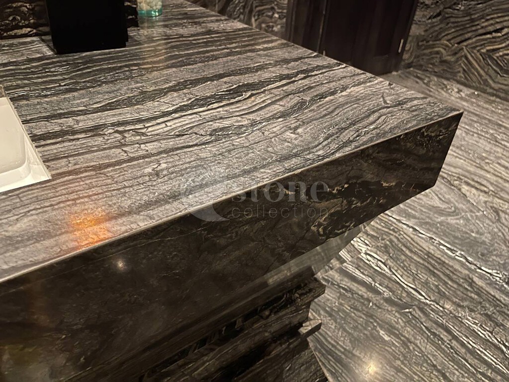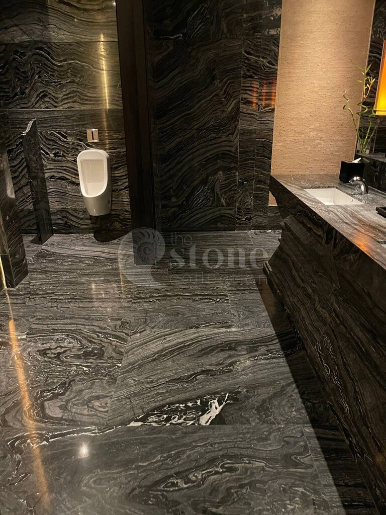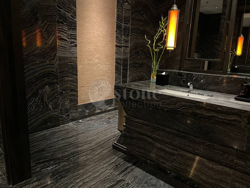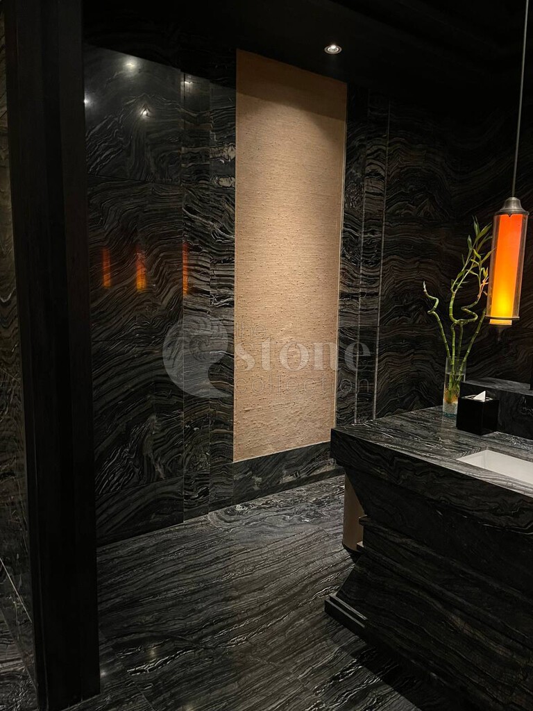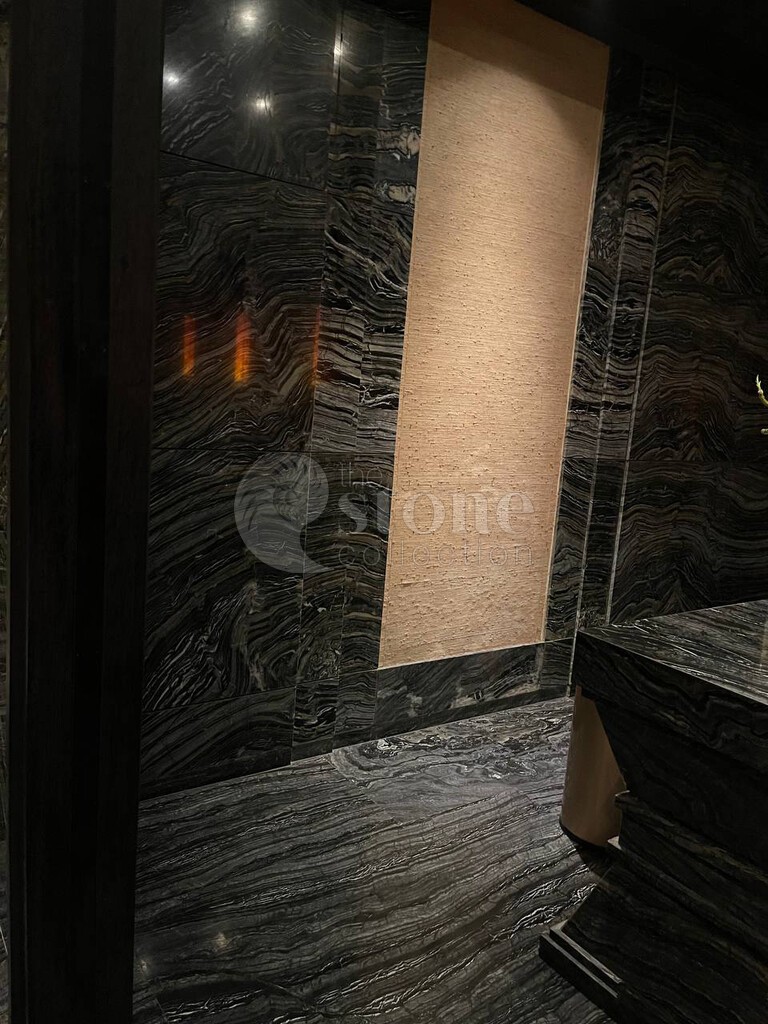 Мрамор Silver Wave — это эффектный тёмный мрамор с выразительным волнообразным рисунком, напоминающим потоки лавы, морские волны или дым. Он известен своей драматичной эстетикой и активно используется в дизайнерских интерьерах премиум-класса.