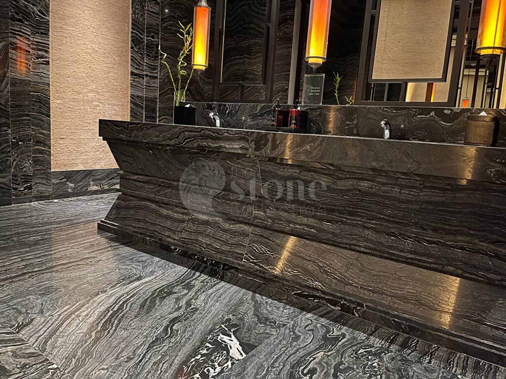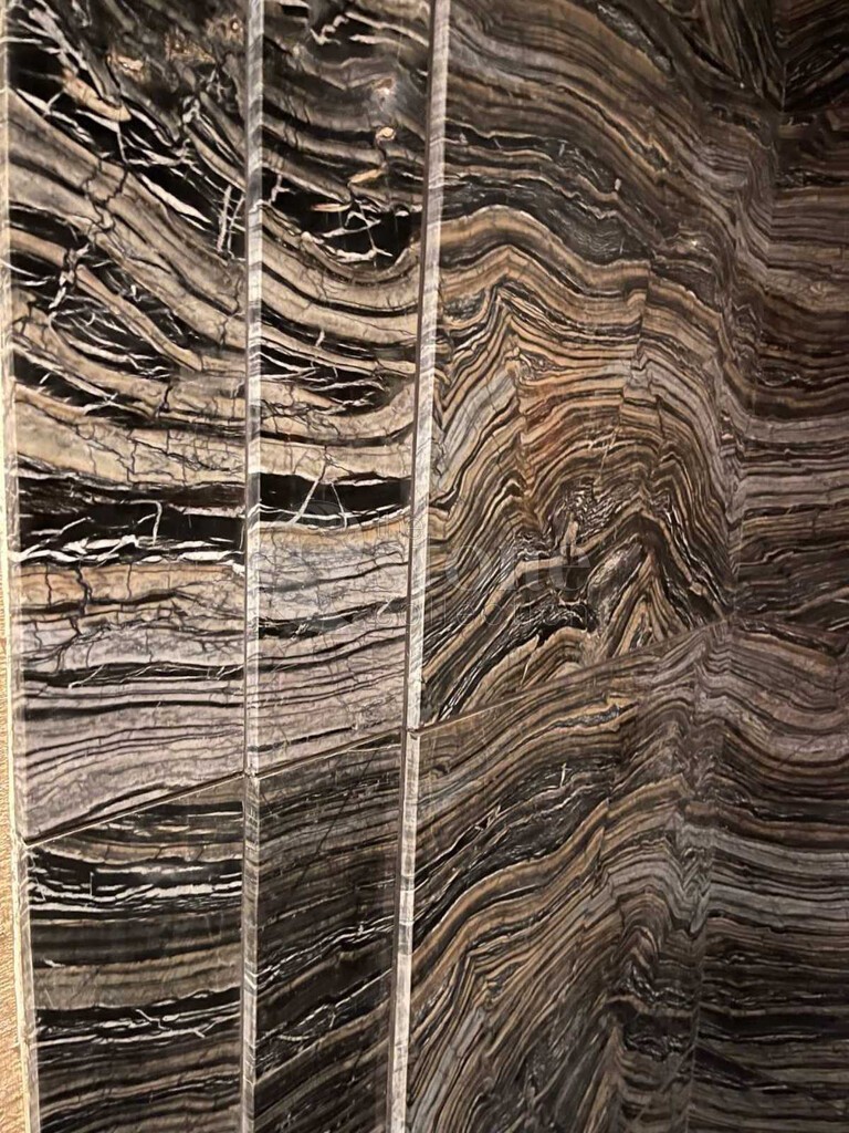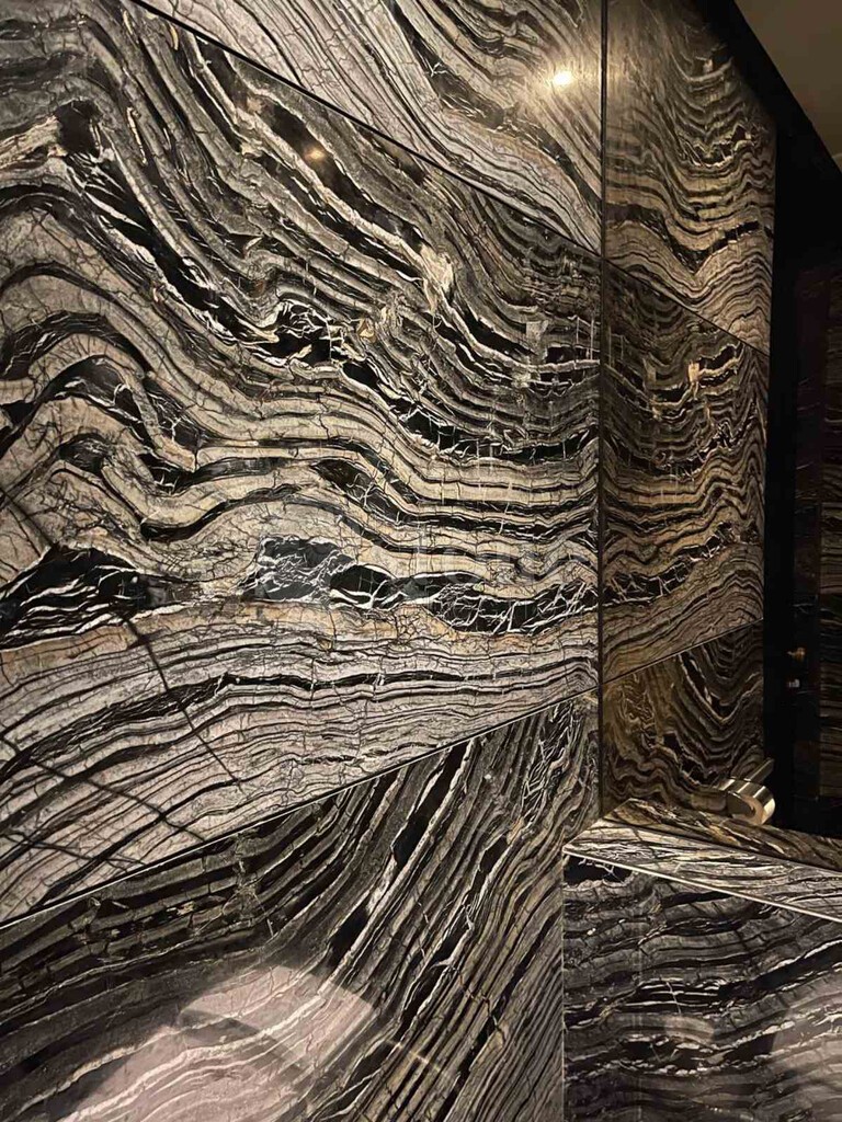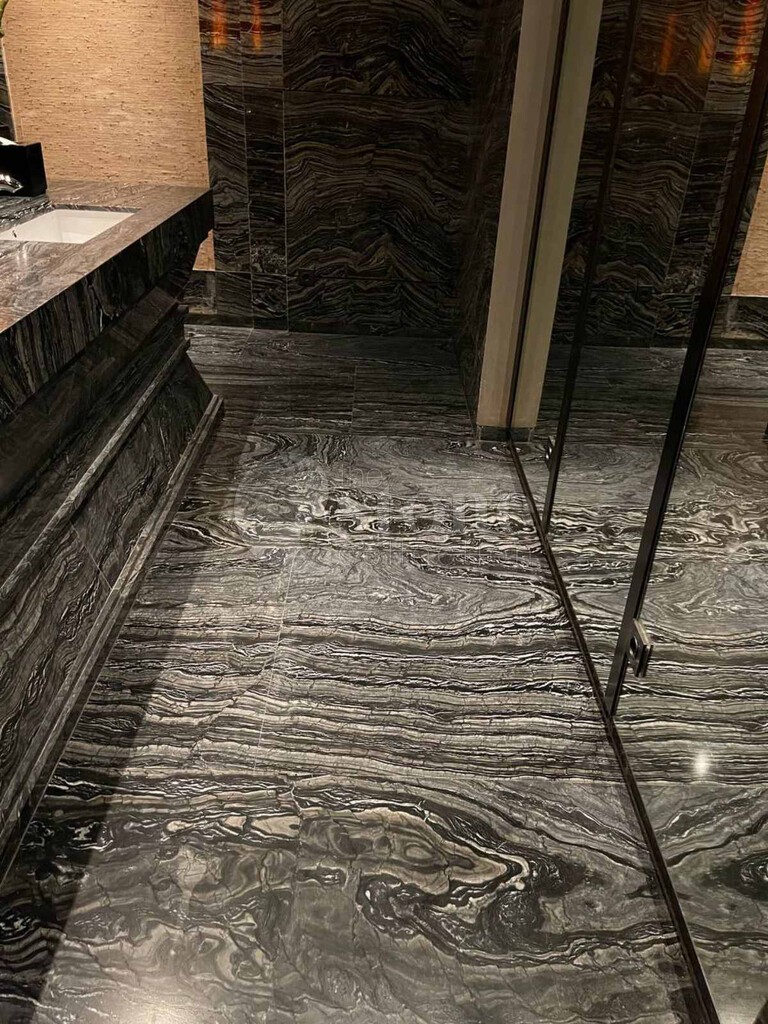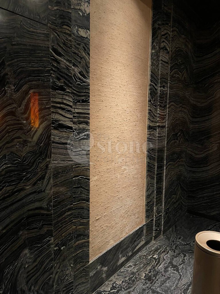 Мрамор Silver Wave — это эффектный тёмный мрамор с выразительным волнообразным рисунком, напоминающим потоки лавы, морские волны или дым. Он известен своей драматичной эстетикой и активно используется в дизайнерских интерьерах премиум-класса.