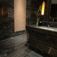 Мрамор родом из Италии. Камень глубокого цвета, по которому проходит тонкая линия золота.