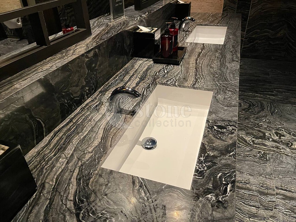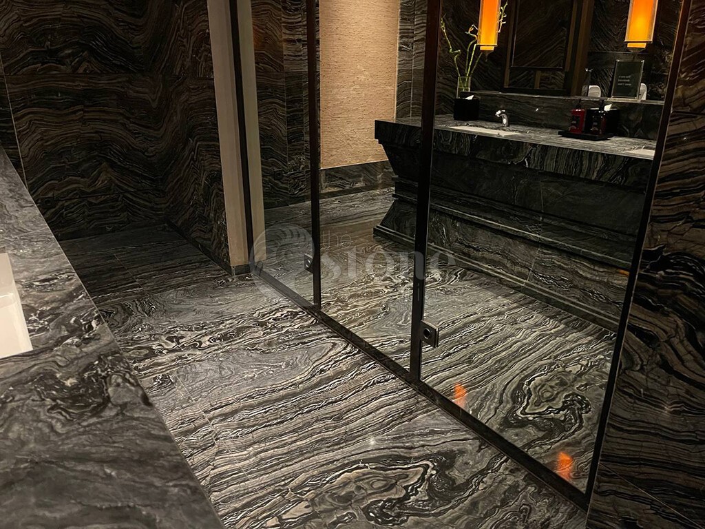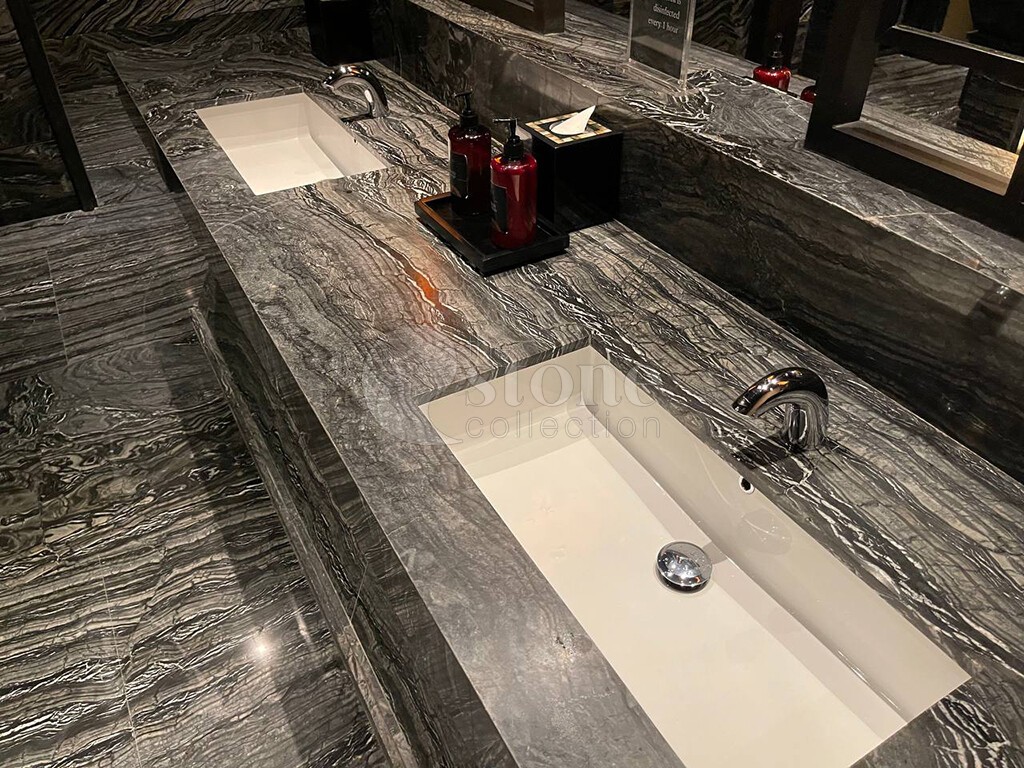 Обычно мрамор Silver Wave используется для полов, облицовки стен, столешниц, каминов и декоративных акцентов. Он особенно популярен в ванных комнатах и кухнях благодаря своей способности придавать пространству нотку изысканности и визуального интереса.